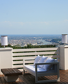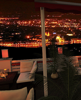 Nyári estéken teraszunkról a panoráma lenyűgöző, erről a pontról Budapest valamennyi hídja látható.