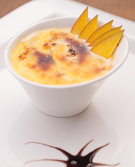 Grilled goose liver served on a potatoe scone with bacon and garlic spiced sour cream5.490,-