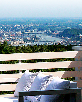 Panorámaablakain keresztül a kilátás lélegzetelállító, ez Budapest legmagasabb pontja, kedvelt helyszín a kisebb, intimebb